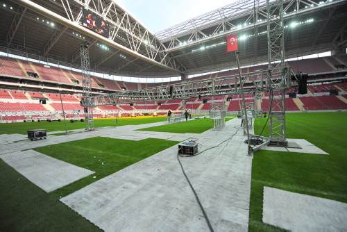 sahaya kurulan platformdan önce bir şeyler sermişler