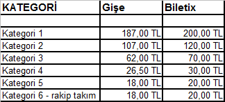 bence burada çok büyük bir adaletsizlik var şimdi V.İ.P tribünün göbeğinden tam şeref locasının dibinden maç bileti satın alan adam da 300 lira ödüyor.en son bloğun (224) en son koltuğundan alan adamda 300 lira ödüyor ve ilaveten bir koltuk yanında (223) oturan adam ise 100 - 125 lira civarı bir para ödüyor.hemde görüş açısı aynı olmasına rağmen.